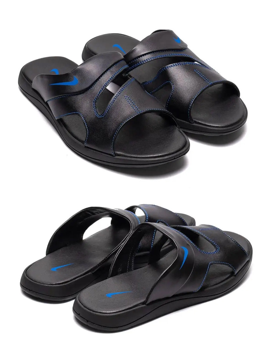 -50%Чоловічі шкіряні літні шльопанці-сланці Nike Classic, Літні чоловічі чорні шльопанці Найк. Чоловіче взуття